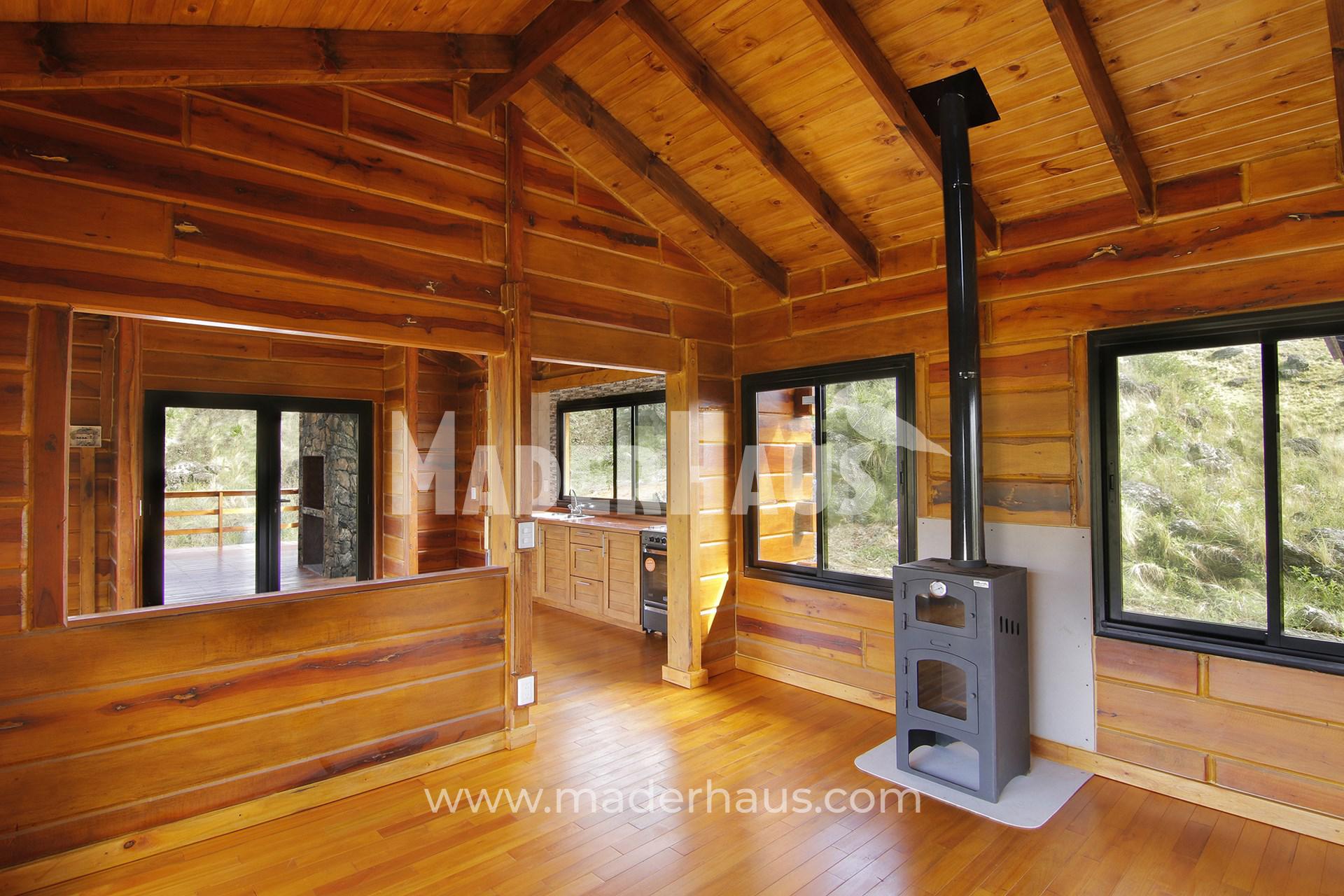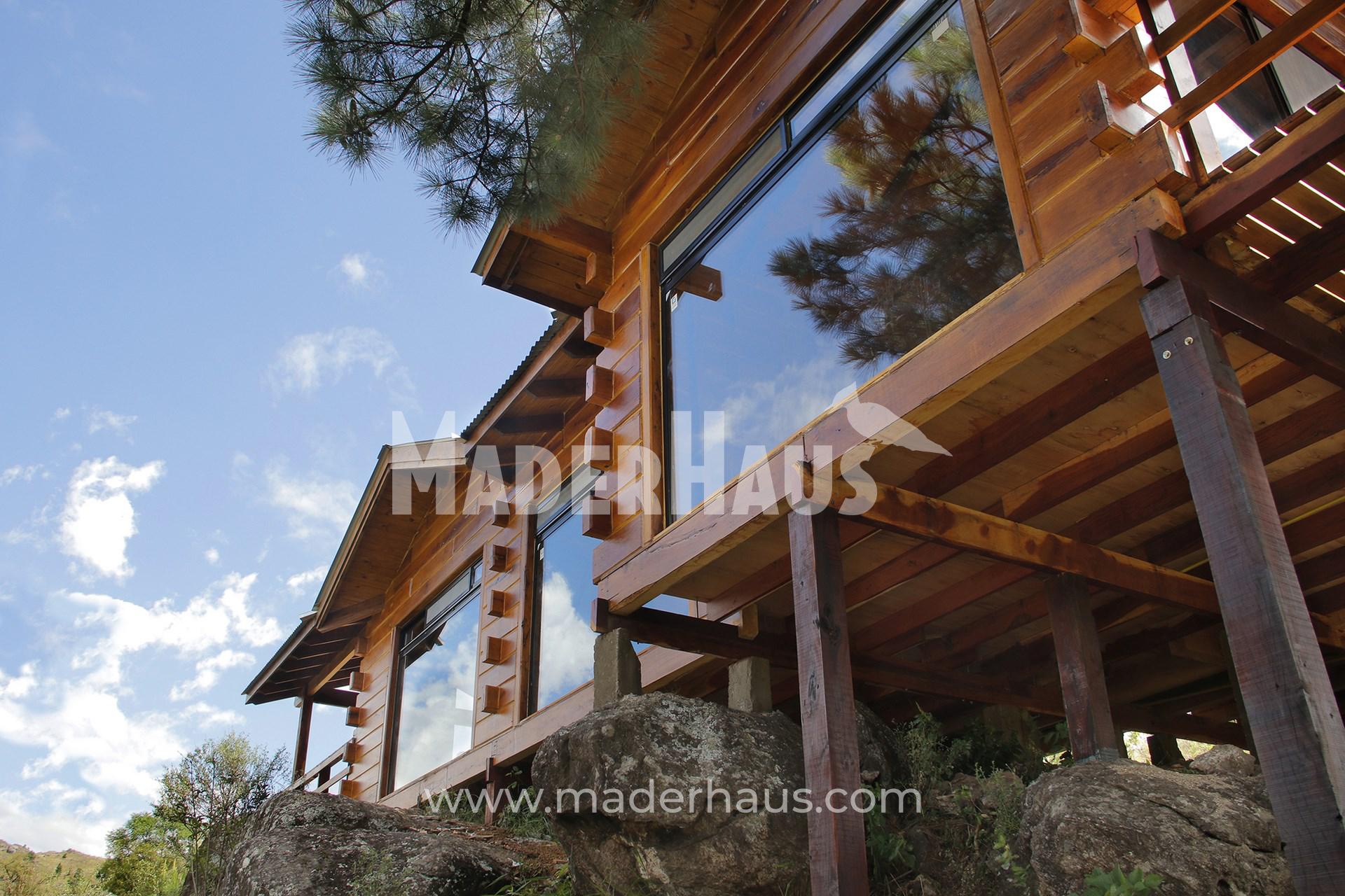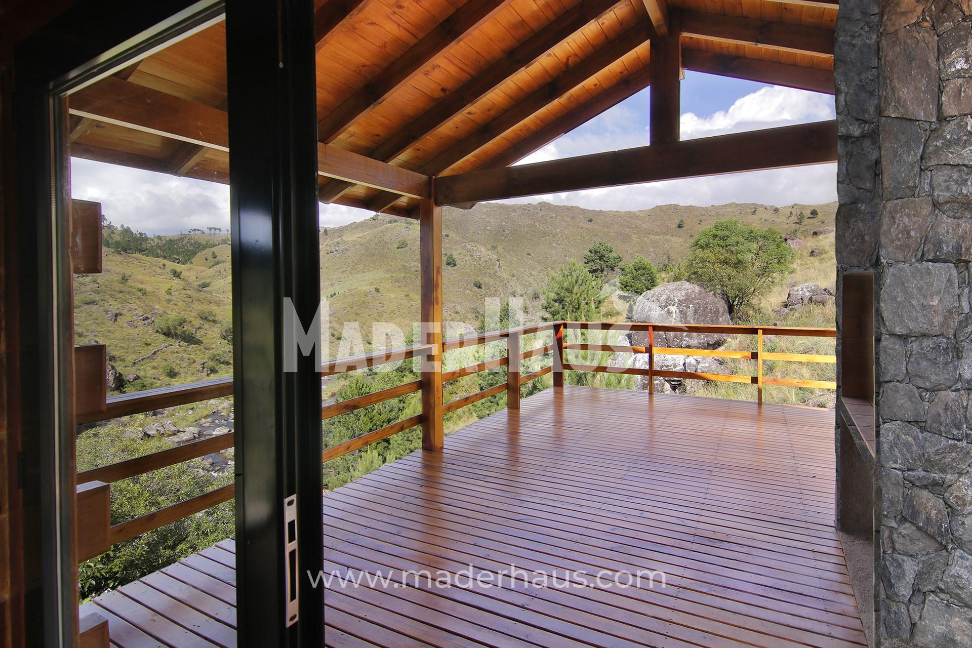 Esta Cabaña Premium de Quebracho construida sobreelevada está ubicada frente al río el Durazno, uno de los más caudalosos y cristalinos de las sierras cordobesas, en una zona alta, con vistas increíbles que recorren las curvas y ollas. Cuenta con dos dormitorios, living comedor, amplia cocina, galería con asador, baño y antebaño. Todas las habitaciones con ventanales. La cabaña de quebracho tiene unos 100 m2 cubiertos y 40 m2 de galería.