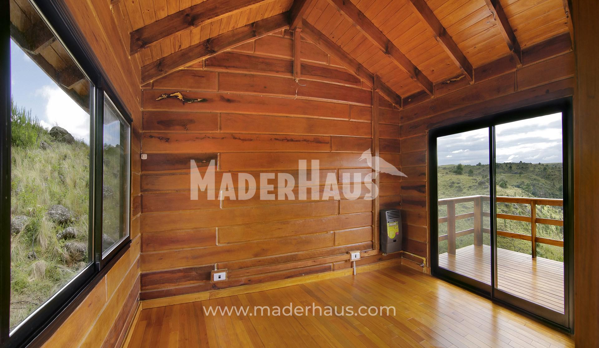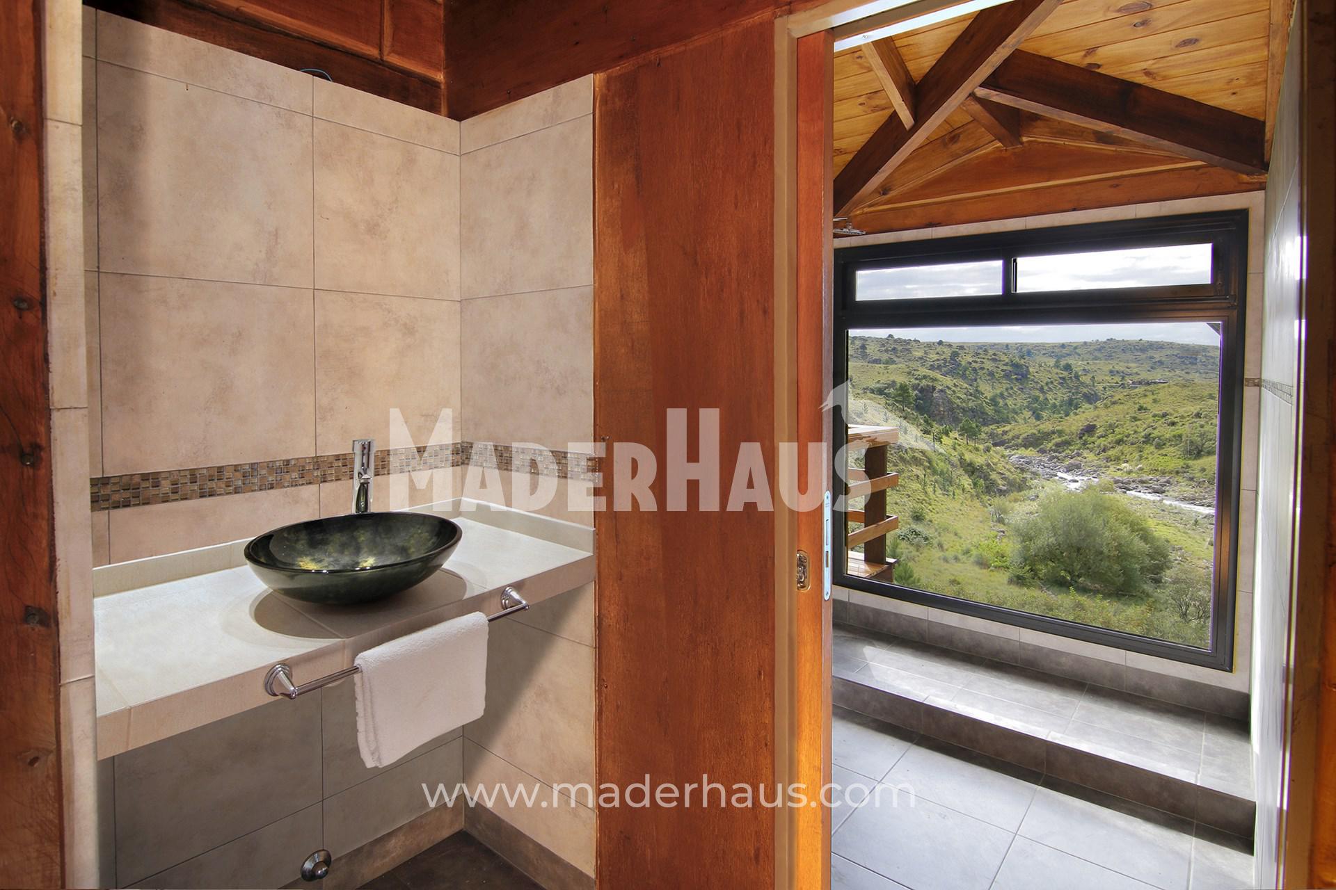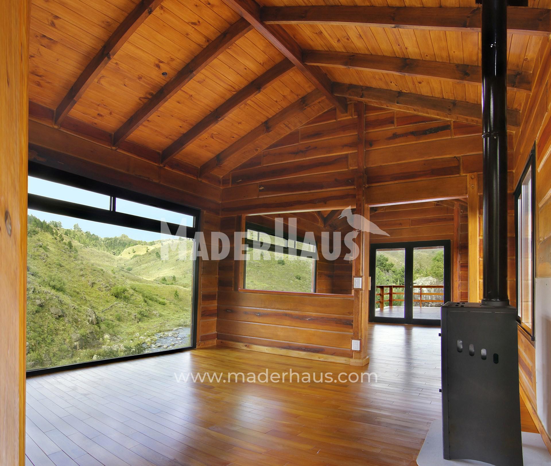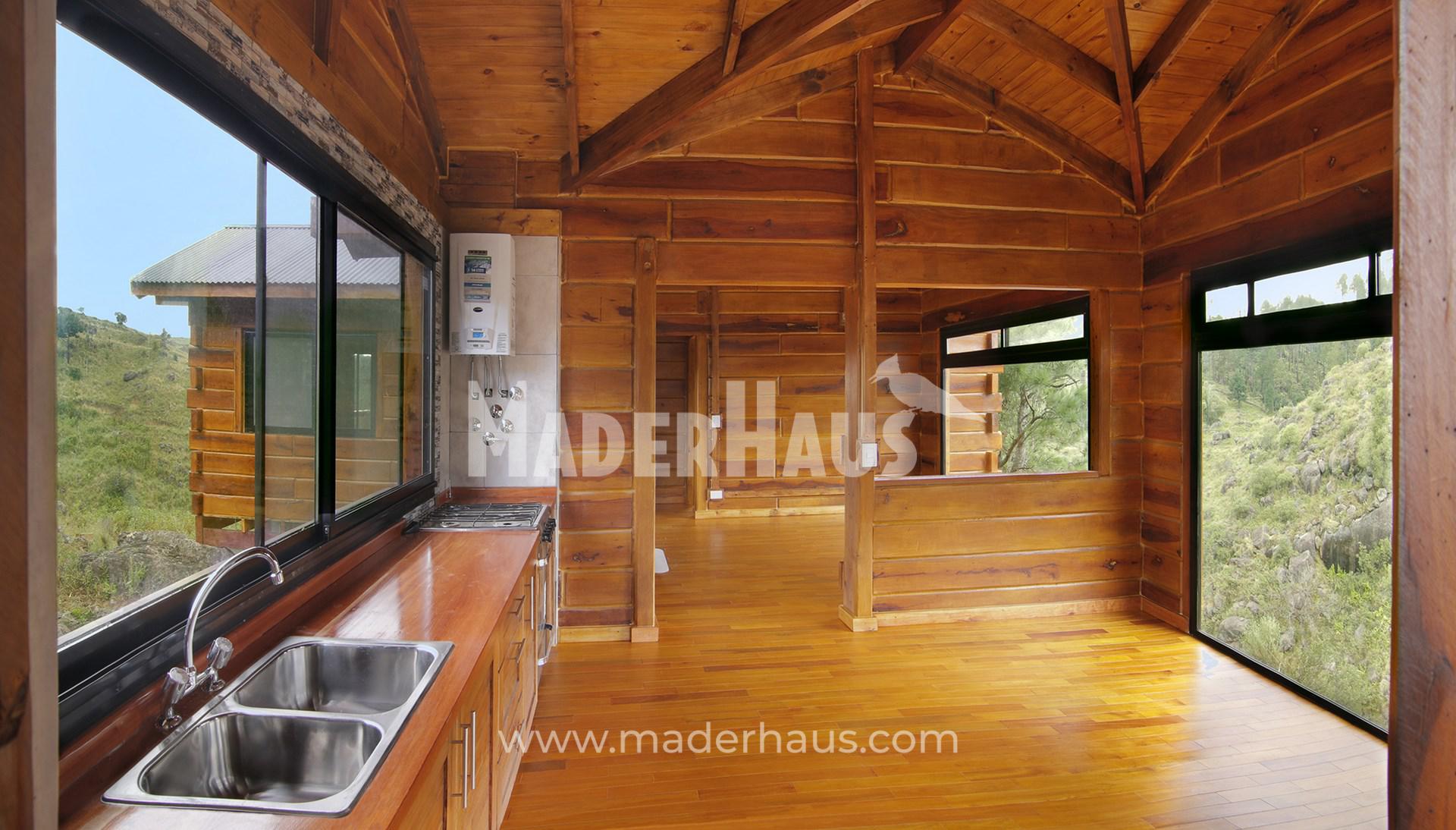 Esta Cabaña Premium de Quebracho construida sobreelevada está ubicada frente al río el Durazno, uno de los más caudalosos y cristalinos de las sierras cordobesas, en una zona alta, con vistas increíbles que recorren las curvas y ollas. Cuenta con dos dormitorios, living comedor, amplia cocina, galería con asador, baño y antebaño. Todas las habitaciones con ventanales. La cabaña de quebracho tiene unos 100 m2 cubiertos y 40 m2 de galería.